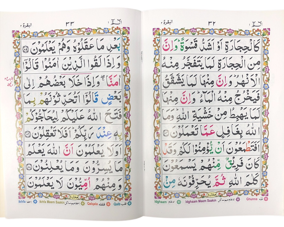 Learn and master the art of Quran recitation with our 30 Para Set Para 9 Line Color Coded Tajweed. Each para is color coded and contains 9 lines of tajweed, conveniently organized in a zipper bag. Available in a paperback format, perfect for everyday use.