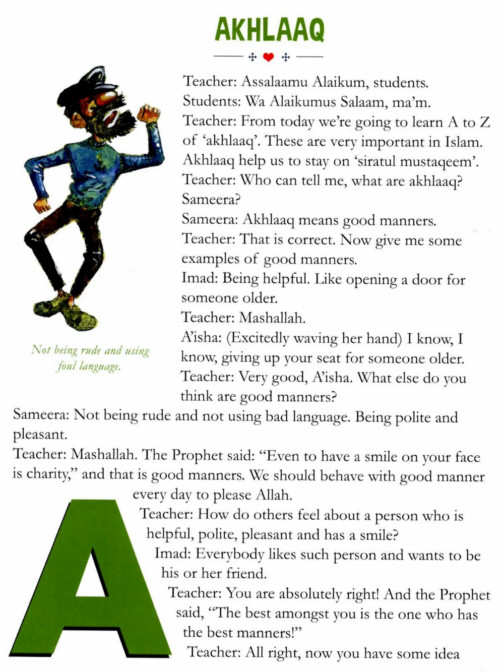 Akhlaaq Comes Alive is a guide that teaches Islamic moral values to children in a way that relates to everyday life. It presents essential virtues alphabetically, each explained through relatable scenarios and storytelling to help children understand their meaning and importance. The book includes short skits and role-playing activities, allowing children, parents, and educators to practice and embody moral principles rather than simply memorize them. Suitable for home or classroom use, it uses clear and simple language to make abstract concepts understandable and applicable. By encouraging active participation through dramatization, Akhlaaq Comes Alive helps children develop a deeper understanding of akhlaaq, retain lessons more effectively, and incorporate good character into their daily lives.
