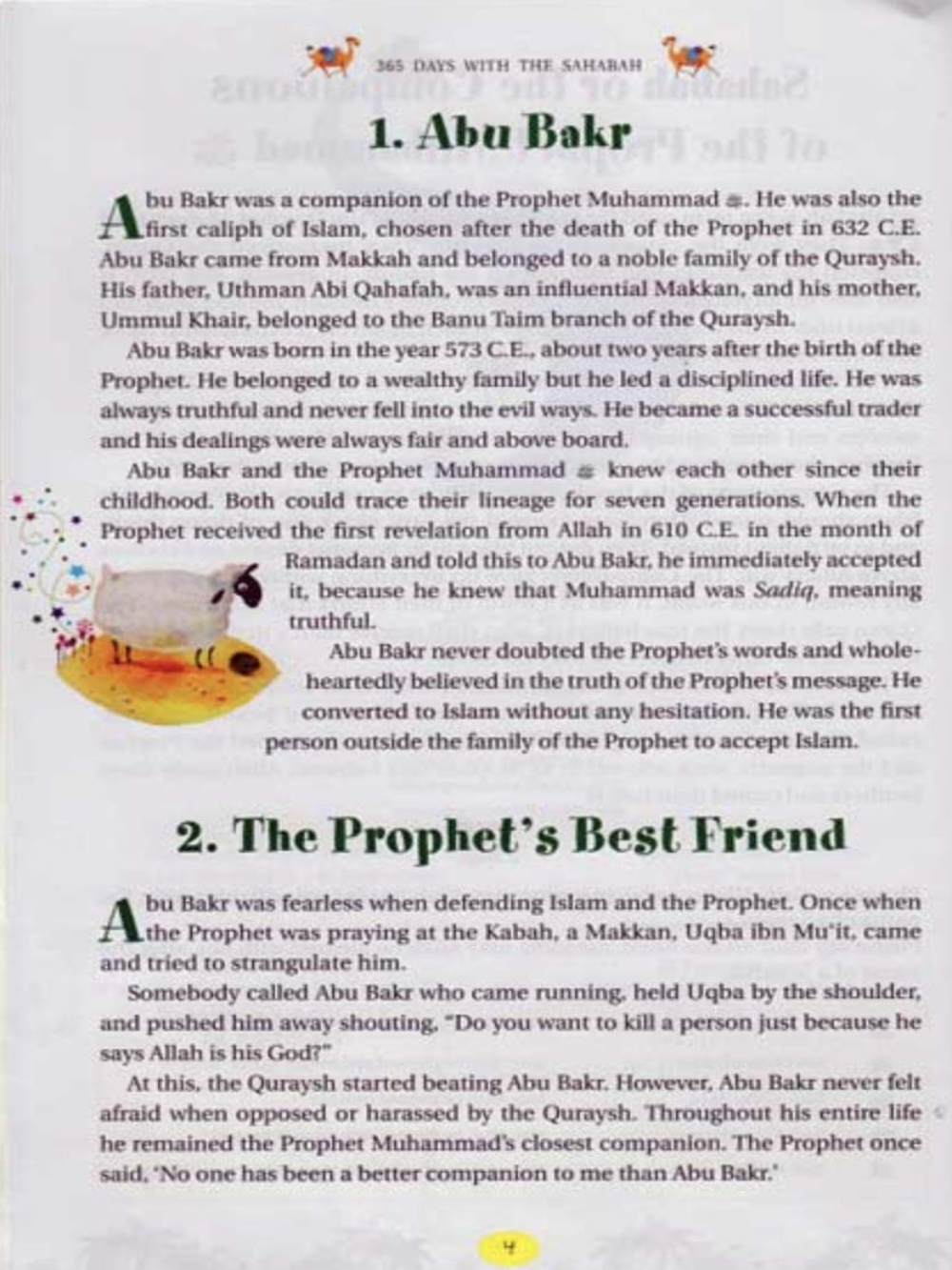 365 Days with the Sahabah is a unique storybook that takes children on a fun-filled, day-by-day journey through the lives of the Sahabah, the Companions of the Prophet Muhammad ﷺ. Through 365 engaging stories, it presents the Sahabah as inspiring individuals whose lives and teachings are loved and respected worldwide, while beautifully conveying the wisdom of the Prophet ﷺ and his Companions in a way children can apply to their daily lives. Written in simple language and enhanced with colourful illustrations, the book introduces young readers to the wonderful world of the Sahabah through captivating and meaningful storytelling.