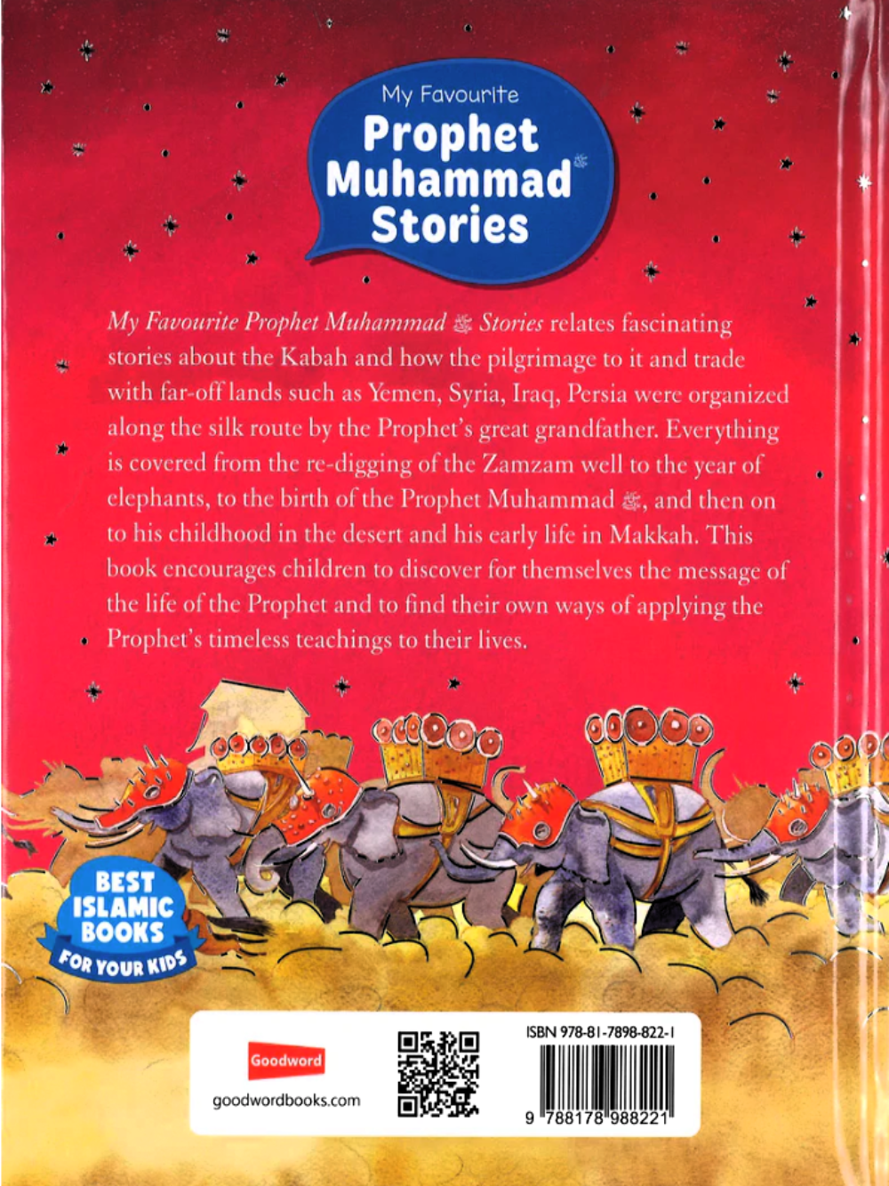 My Favorite Prophet Muhammad Stories is a beautifully written collection of fascinating and inspiring stories that introduces children to the early history of Prophet Muhammad ﷺ in a clear and engaging way. The book highlights important events connected to the Ka‘bah, including how pilgrimage and trade with distant lands such as Yemen, Syria, Iraq, and Persia were organized along the historic Silk Route by the Prophet’s great grandfather. It covers everything from the re-digging of the Zamzam well and the memorable Year of the Elephant to the birth of the Prophet Muhammad ﷺ, followed by his childhood in the desert and early life in Makkah. Designed to be more than just a storybook, this book encourages children to discover the message of the Prophet’s life for themselves and to apply the Prophet’s timeless teachings—such as kindness, honesty, and faith—in their own lives.