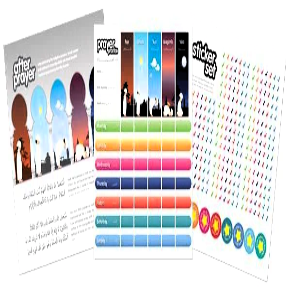 With glossy, durable pages and a calendar-style design, the charts are easy to hang on walls and use daily. This set motivates children to track their prayers, learn routines, and enjoy practicing Salah, making it a practical and engaging resource for parents and teachers.
