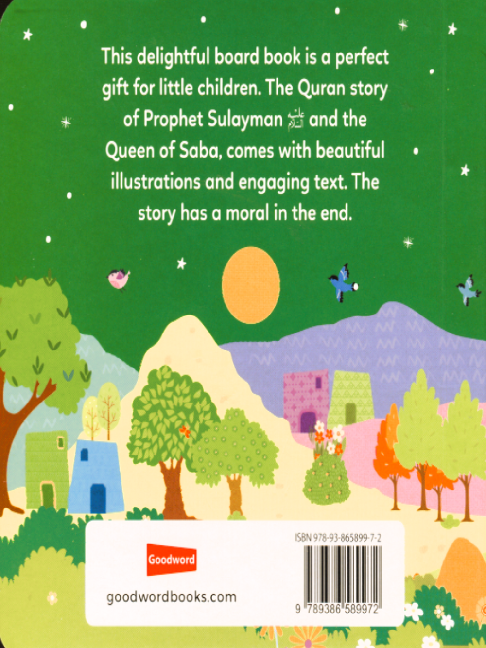 Prophet Sulayman and the Queen of Saba is a delightful board book specially designed for little children as an engaging and meaningful introduction to one of the Quran's most fascinating stories. With its captivating illustrations and simple, rhythmic text, the book brings to life the wisdom of Prophet Sulayman (AS) and his remarkable encounter with the Queen of Saba. Children will enjoy learning about Prophet Sulayman's ability to communicate with animals, his just leadership, and how the Queen came to believe in Allah. The story is told in a gentle and age-appropriate way, keeping young readers intrigued while teaching them valuable lessons in humility, belief, and gratitude. This beautifully crafted board book features colorful, engaging illustrations that capture children's imaginations while introducing them to Islamic teachings in a fun and accessible manner. The durable board book format is perfect for little hands, making it ideal for repeated reading and exploration. At the end of the book, a clear moral reinforces the message and encourages reflection, helping children internalize the story's important lessons. Whether you're looking for a meaningful gift for a special occasion or building your child's Islamic library, this book is a wonderful choice. Perfect for children under 5 years old, it makes a thoughtful present for birthdays, Eid celebrations, or any time you want to share the beauty of Quranic stories with the young ones in your life.