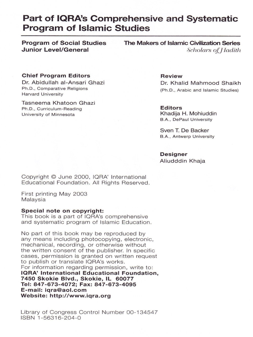• Publisher: IQRA’ International Educational Foundation