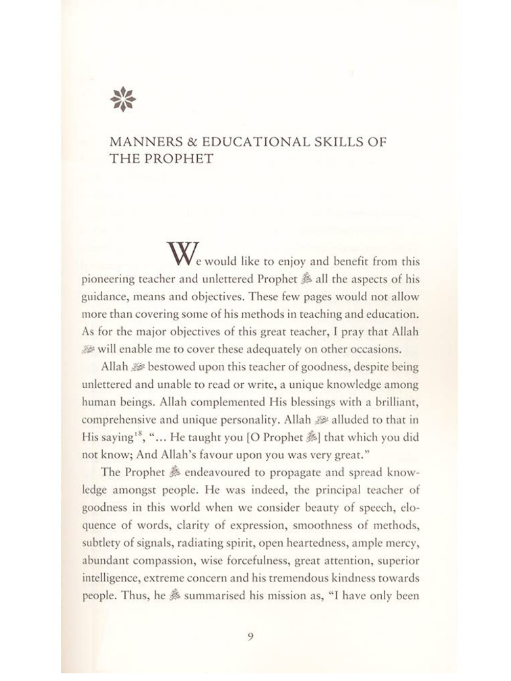 Education is one of the most universally discussed topics – the process of exchanging knowledge and values from one generation to the next. For Muslims, wherever they may live in the world, there is an added complexity to the education dilemma because of the general diminishing of respect for the sacred and the separation of values from facts. This book shows the teachings and methods derived from the statements and model of the Prophet Muhammad, God’s peace be upon him. It is a duty and a responsibility of Muslim educators to study these essential principles and explore how they may be translated into methodologies that apply in today’s world.