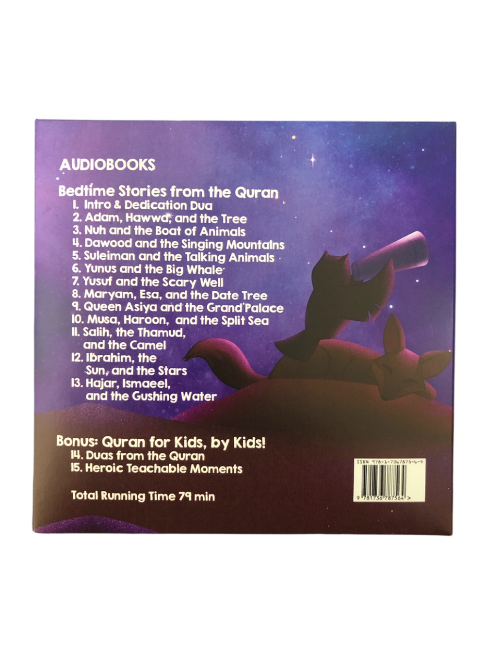 Introduce young children to Islamic heritage through engaging storytelling with this audiobook CD featuring twelve carefully selected Quranic narratives. Each story is crafted to captivate developing minds while instilling moral values and spiritual awareness before bedtime. The audio format makes it ideal for car rides, quiet time, or establishing a meaningful nighttime routine. Perfect for parents seeking to build their child's connection to Islamic teachings in an age-appropriate, entertaining way. This collection transforms traditional Quranic stories into memorable experiences that resonate with early learners.