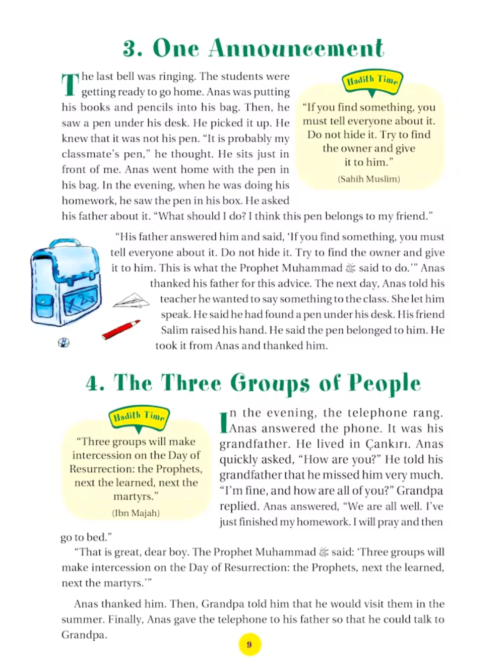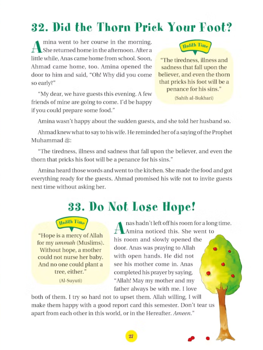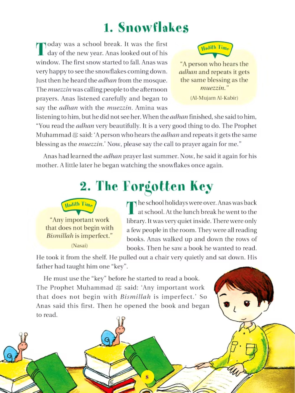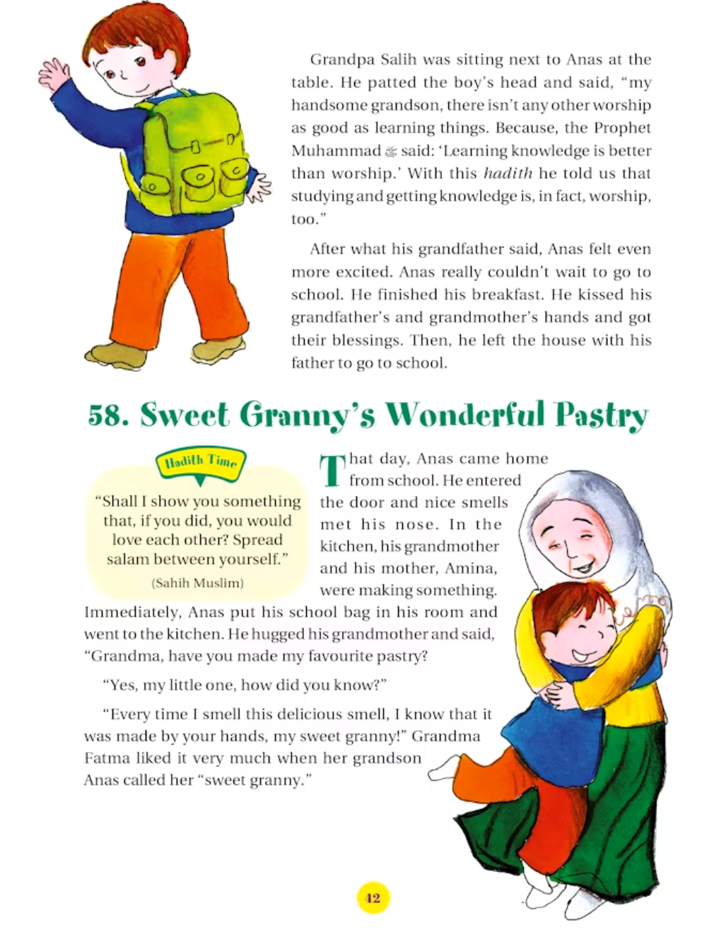 365 Hadith with Stories is a beautifully illustrated book for children that shares one hadith and one story for every day of the year. Written in simple, easy-to-understand language, the hadith teach important lessons about kindness, honesty, patience, and respect, while the stories show how these teachings can be applied in everyday life. The colorful illustrations bring each story to life, capturing children’s imagination and making learning fun. By reading a little each day, children develop a deeper love for Allah, appreciation for the Prophet Muhammad’s (peace be upon him) wisdom, and an understanding of how to live with good character. Perfect for ages 7–13, this book is ideal for daily reading, bedtime stories, or quiet moments, and makes a meaningful gift that nurtures faith, gratitude, and ethical behavior.
