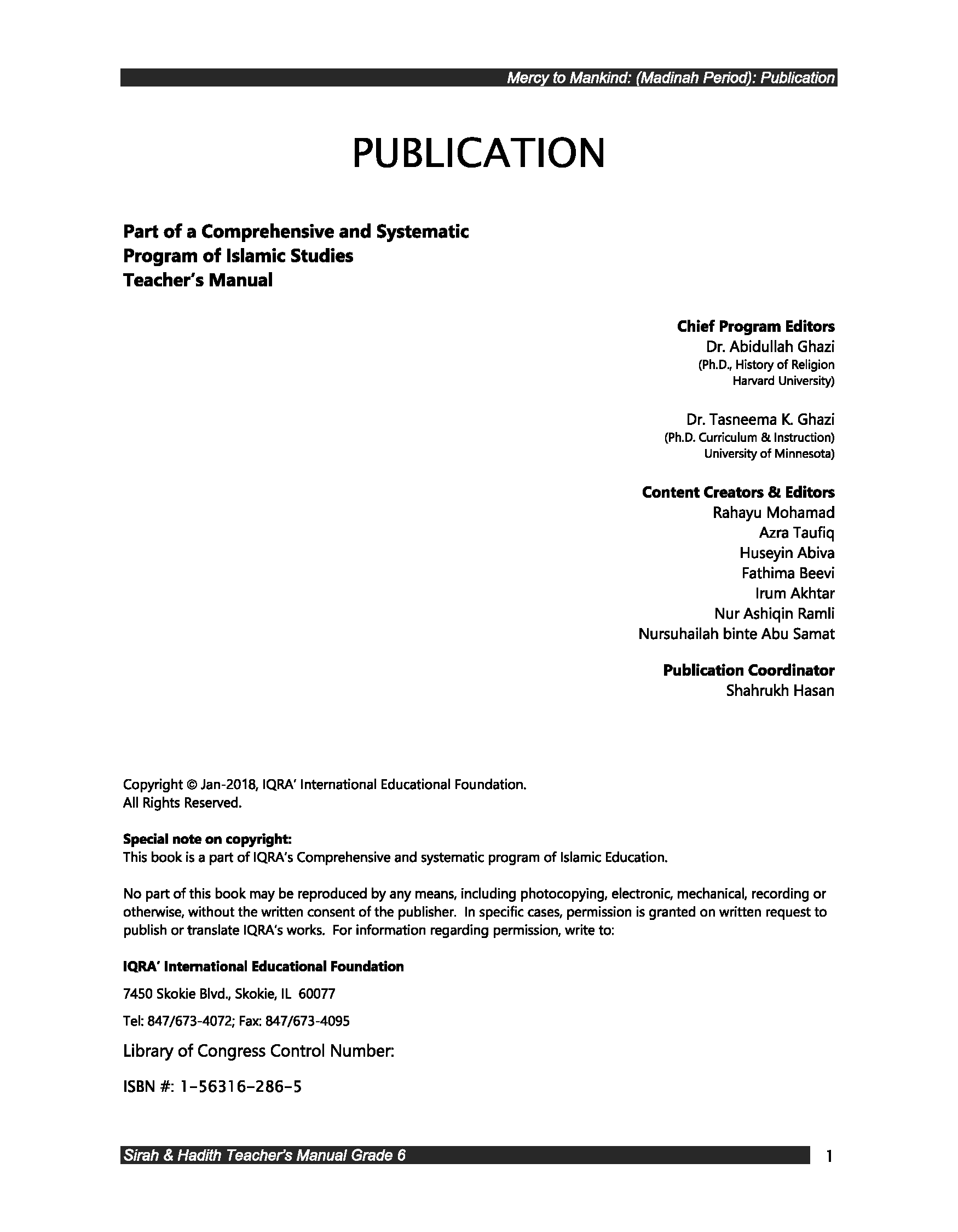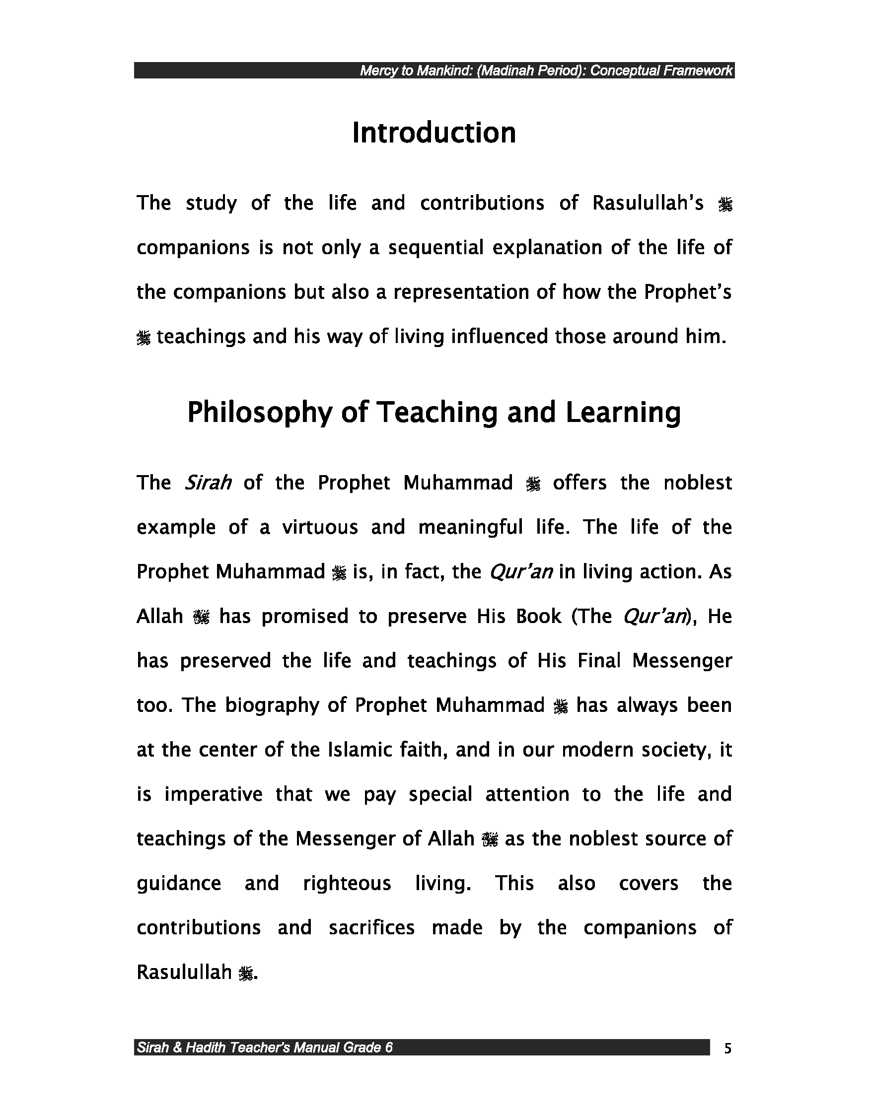 This teacher's guide and resource material to Mercy to Mankind Madinah Period. Covers syllabi, details lesson plans, teaching strategies, proposed project work processes, informal checklists, quiz corners, portfolios, semester-wise evaluation and answer keys to workbook activities. Teachers will find it extremely helpful for their teaching experiences in the classrooms.