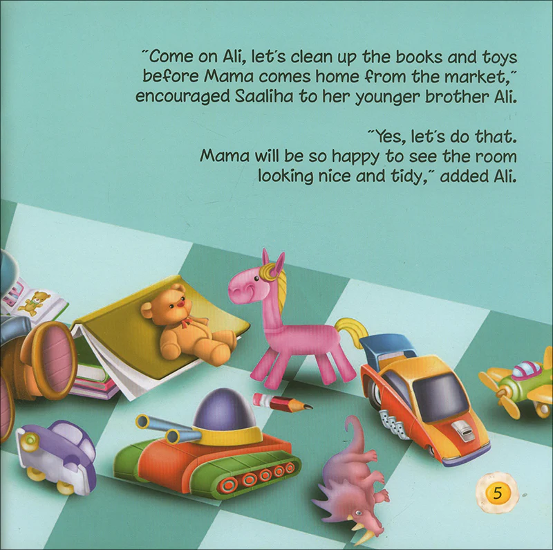 It is important for children to develop good character, morals, and values from a young age. Saaliha and Ali enjoy working together — it helps them finish their tasks more quickly and brings them closer as siblings.